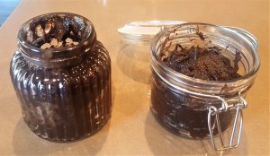 the first batch of Oreo cookie butter. Fancy jars are not such a good idea.